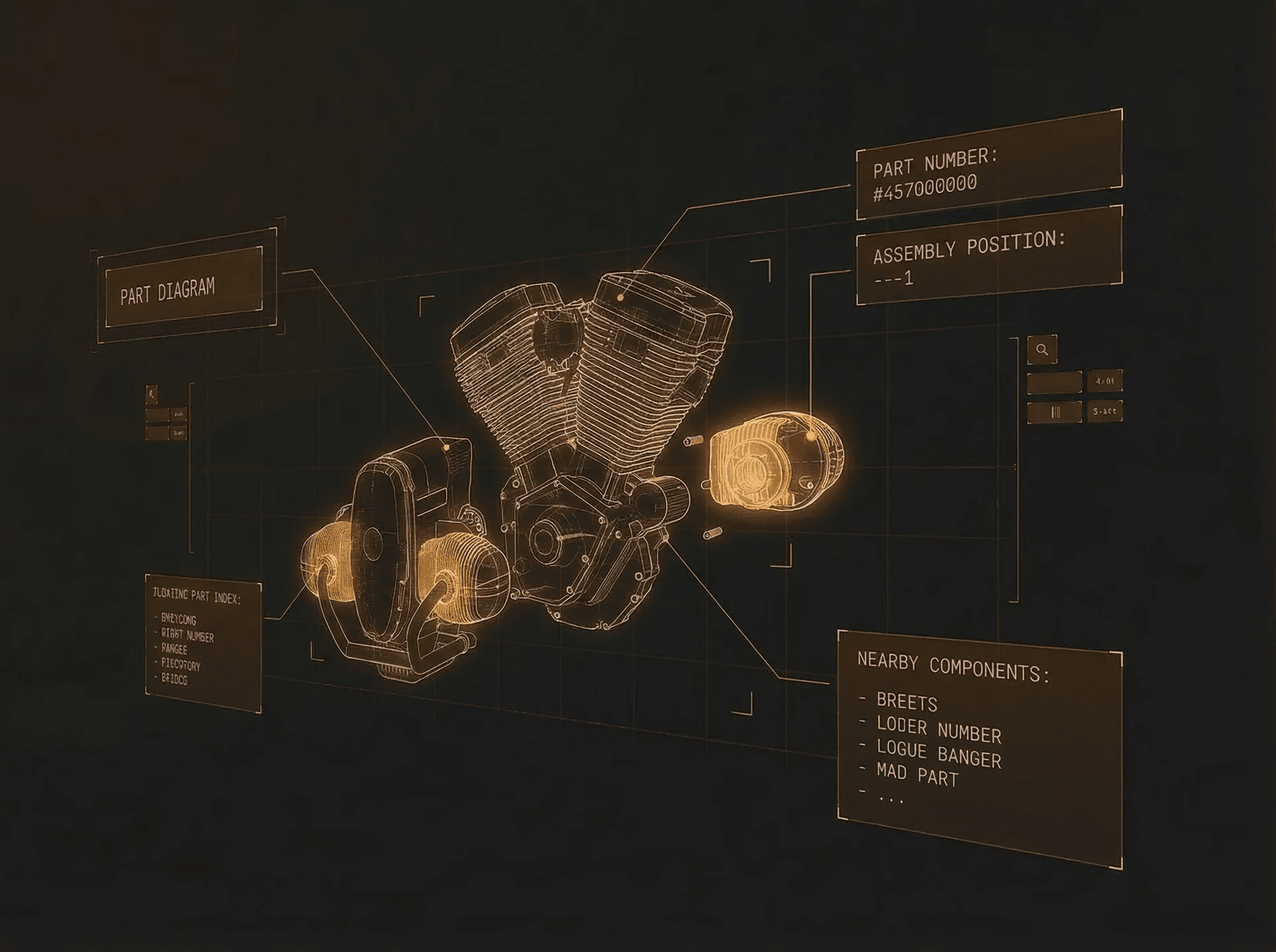 Clean, zoomable factory diagrams. Find the part, see where it goes, know what’s around it. No more squinting at photocopies.