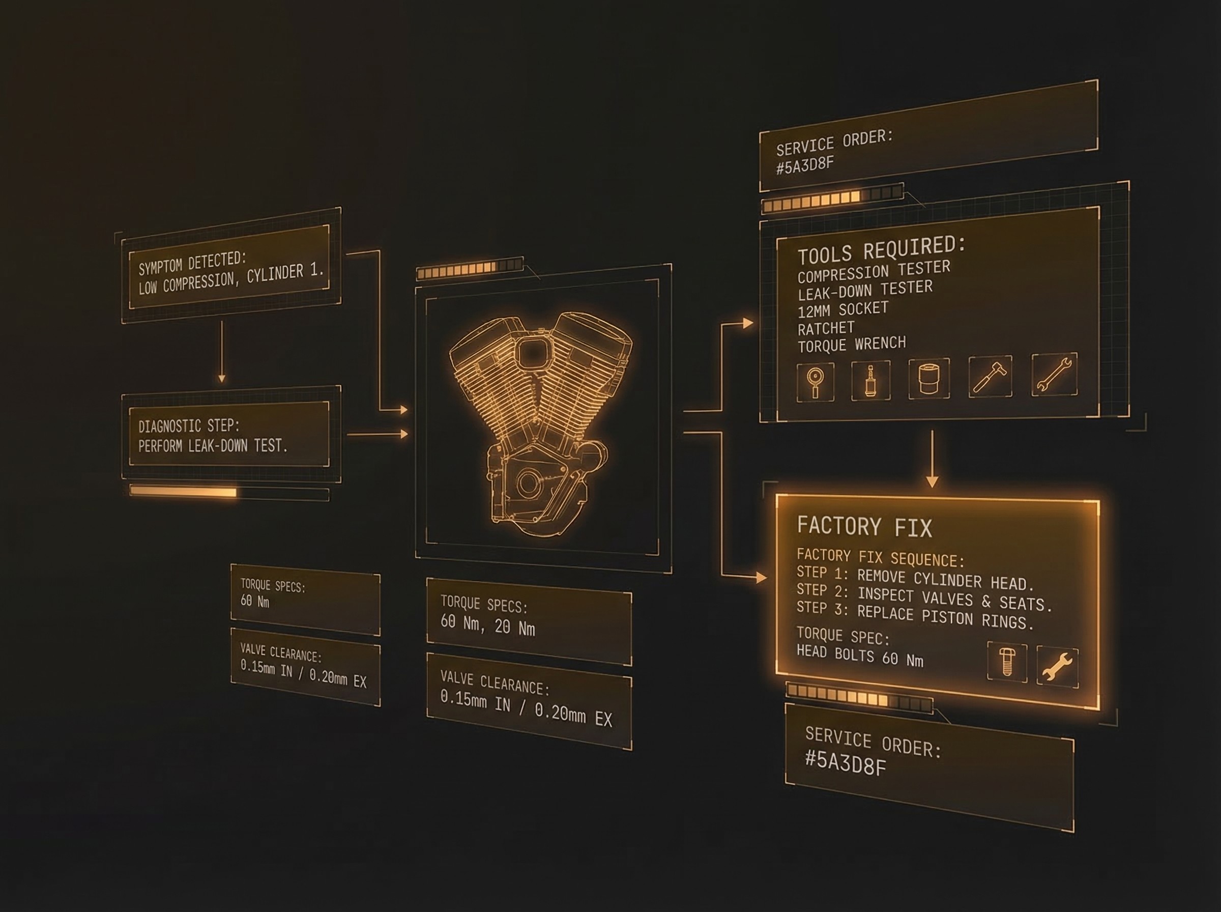 Describe the symptom and get a single, proven path from the factory service manual with step-by-step instructions, the tools you’ll need, and the exact fix with torque specs.